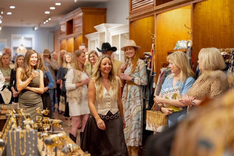 On Wednesday, October 22nd, the Charleston Magazine Club gathered with Finicky Filly for Sips for Steeplechase, an evening of equestrian elegance where guests sipped, shopped, and supported Charleston Area Therapeutic Riding (CATR) ahead of the Steeplechase of Charleston. Inside the beautifully curated boutique, guests enjoyed cocktails and hors d’oeuvres provided by The Archer, while exploring pop-up showcases from Boysterous Couture and Southern Ruetz Custom Hats. The atmosphere was set by the smooth acoustic sounds of Phillip Jackson, creating a refined and lively backdrop for a night that perfectly blended style and community.